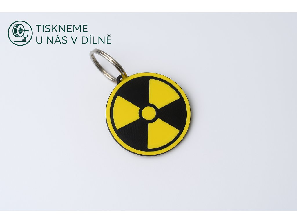3D tištěná klíčenka radioaktivní symbol – žlutá a černá