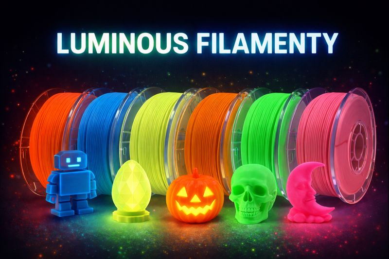 Luminous filamenty obsahují speciální pigmenty, které po nasvícení září ve tmě. Jsou vhodné pro dekorativní předměty, orientační symboly, nápisy, plastiky nebo hračky. Čím více světla pohltí, tím intenzivněji svítí.
